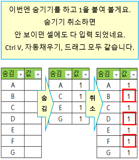 숨김 표에서 보이는 곳만 입력하기