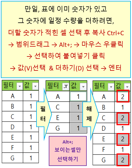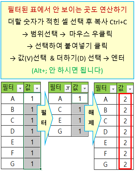 필터된 표에서 안 보이는 곳도 연산하기