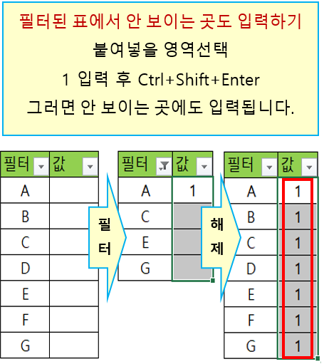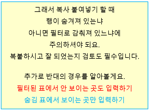 필터된 표에서 안 보이는 곳도 입력하기