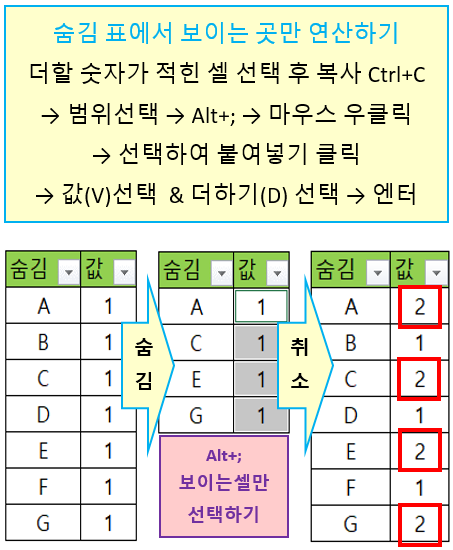 숨김 표에서 보이는 곳만 연산하기